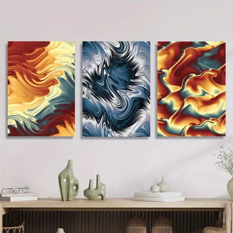 3pcs Liquid Marbling Paint Texture Metal Print Ready to Hang Art
