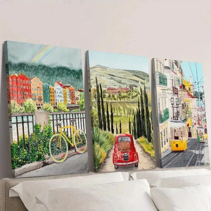 3pcs Lisbon Portugal Europe City Scenery Wall Art Set Canvas Framed 40x60cm - High Quality Print 100% Australian Made Wall Canvas Ready to Hang