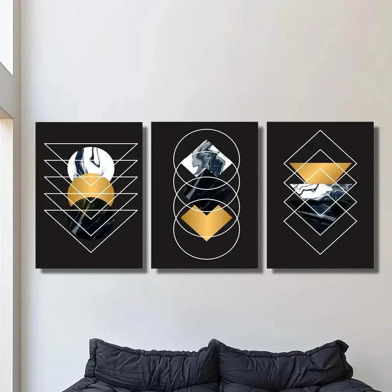 3pcs Luxurious art, geometric circle triangle Metal Print Ready to Hang Art