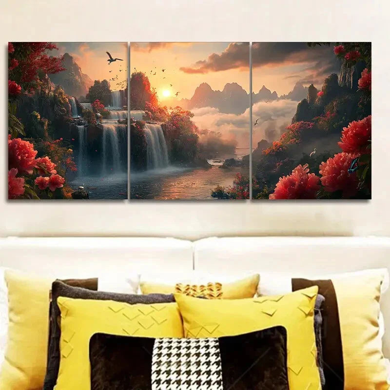 3pcs Luxurious Chinese Landscape Painting Metal Print Ready to Hang Art
