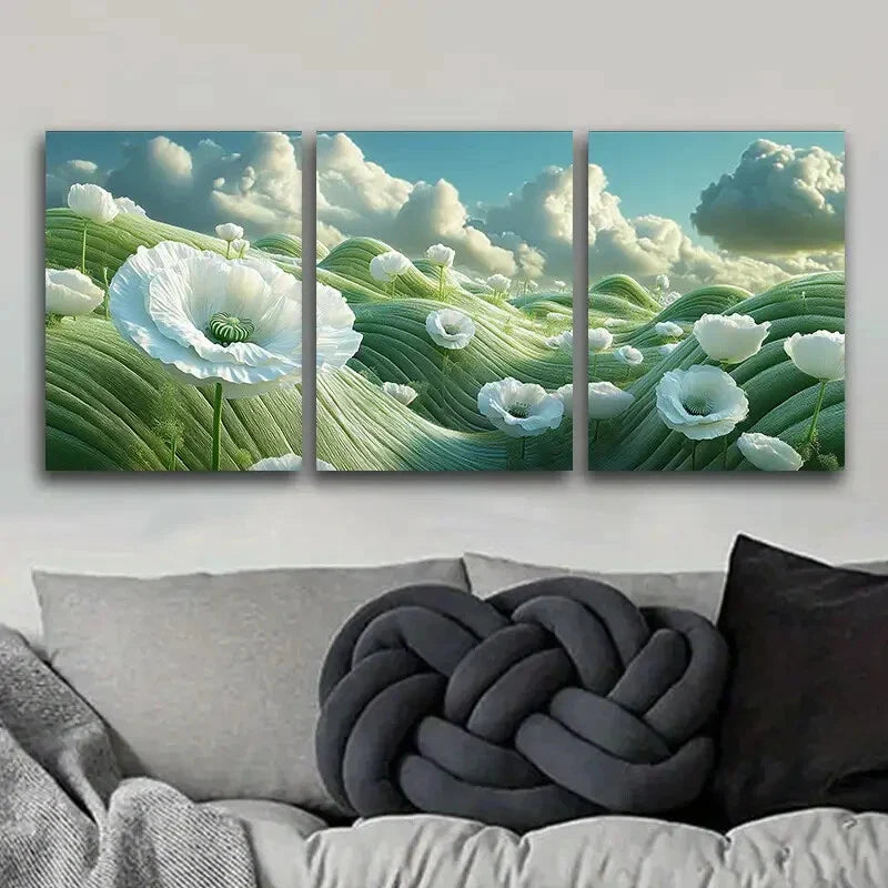 3pcs Luxurious White Poppy Art Print, Metal Print Ready to Hang Art