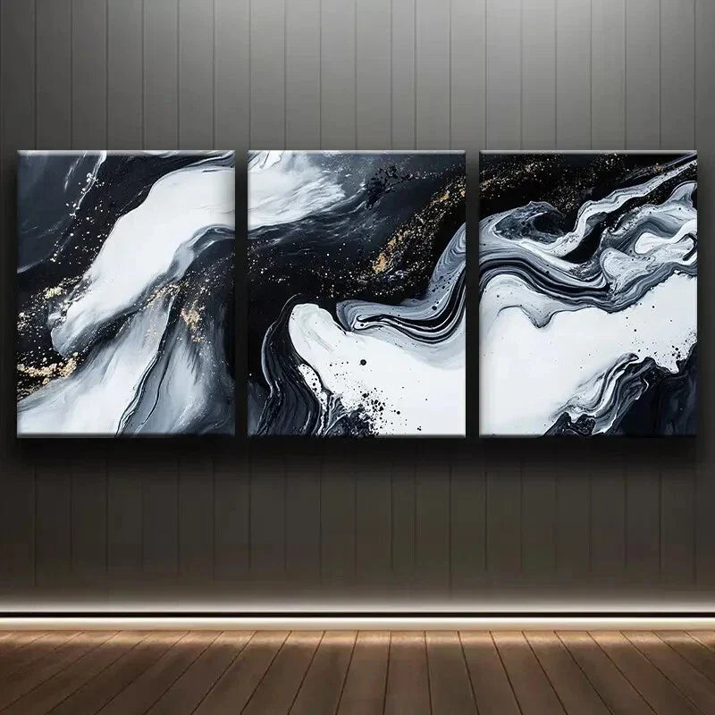 3pcs Luxury Black and White Abstract Metal Print Ready to Hang Art