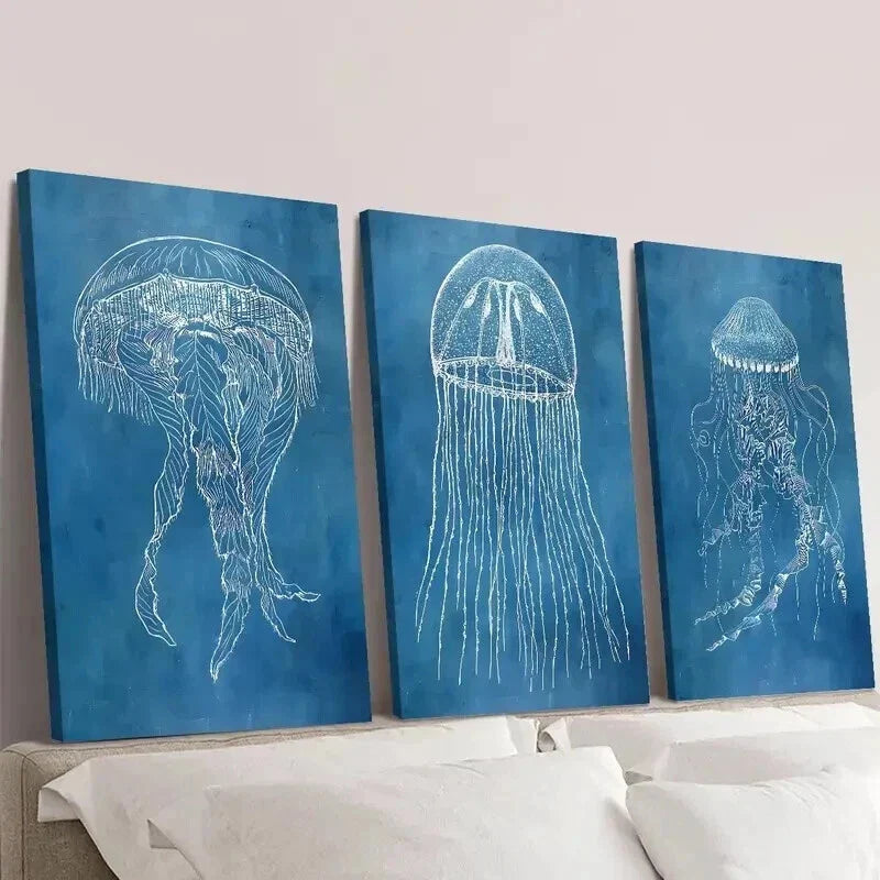 3pcs Luxury Jellyfish Mordai Blueprint Wall Art Set Canvas Framed 40x60cm - High Quality Print 100% Australian Made Wall Canvas Ready to Hang