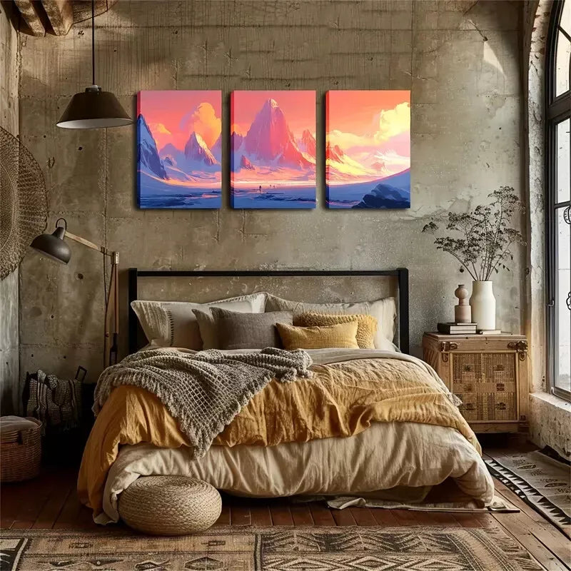 3pcs Magnificent Snow Mountain Wall Art Set Canvas Framed 40x60cm - High Quality Print 100% Australian Made Wall Canvas Ready to Hang