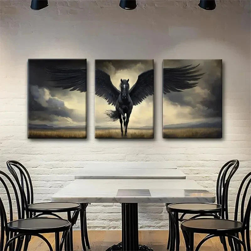 3pcs Majestic Black Pegasus in Flight Perfect Wall Art Set Canvas Framed 40x60cm - High Quality Print 100% Australian Made Wall Canvas Ready to Hang