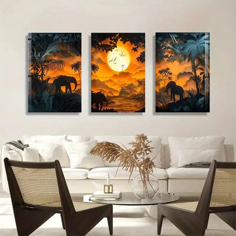 3pcs Majestic Elephants Sunset Safari Perfect Wall Art Set Canvas Framed 40x60cm - High Quality Print 100% Australian Made Wall Canvas Ready to Hang