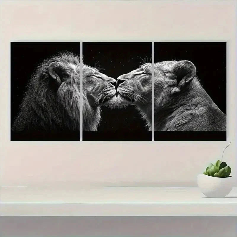 3pcs Majestic Lions Love Black and White Metal Print Ready to Hang Art