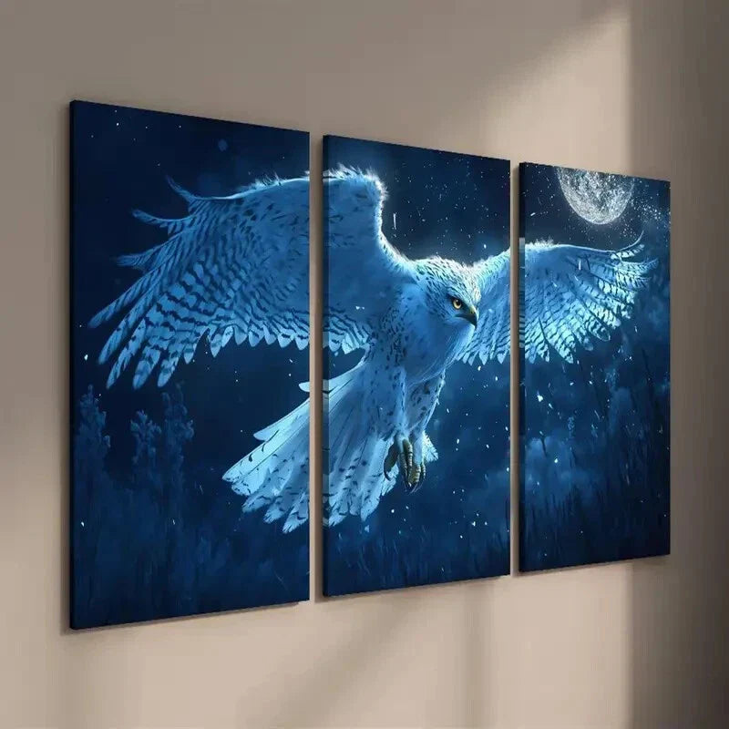 3pcs Majestic Snowy Owl in Moonlight Wall Art Set Canvas Framed 40x60cm - High Quality Print 100% Australian Made Wall Canvas Ready to Hang