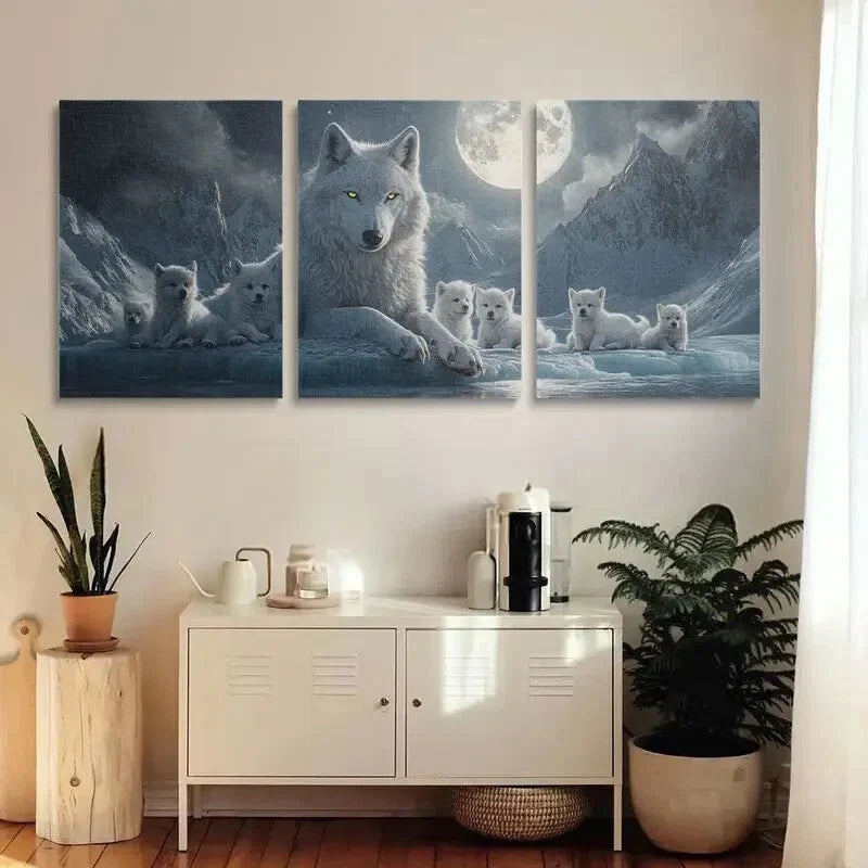 3pcs Majestic White Wolf with Yellow Eyes Metal Print Ready to Hang Art