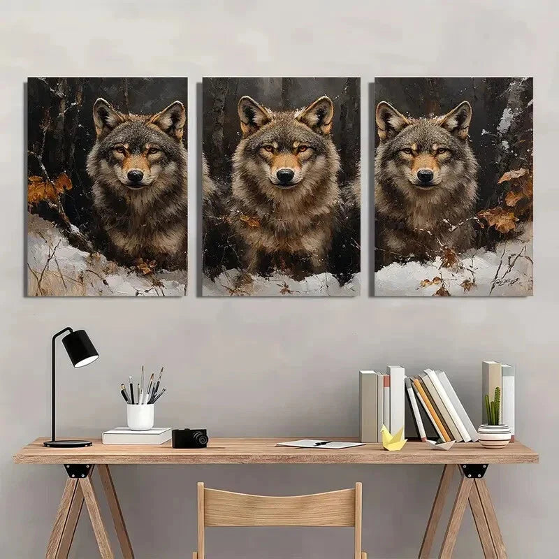 3pcs Majestic Wolf Pack Forest Metal Print Ready to Hang Art