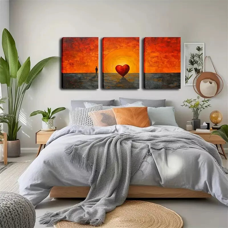 3pcs Man and Red Heart Silhouette, Coastal Lands Wall Art Set Canvas Framed 40x60cm - High Quality Print 100% Australian Made Wall Canvas Ready to Hang