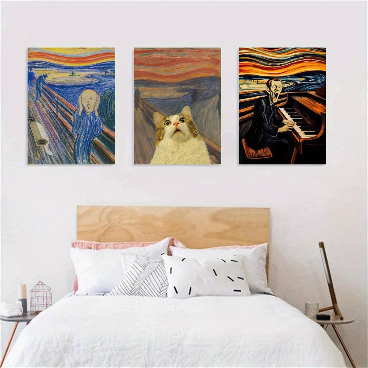 3pcs Man Screaming Holding His Head, Frightened Cat Metal Print Ready to Hang Art