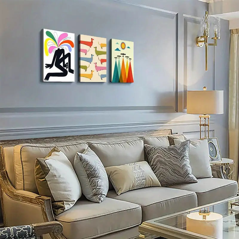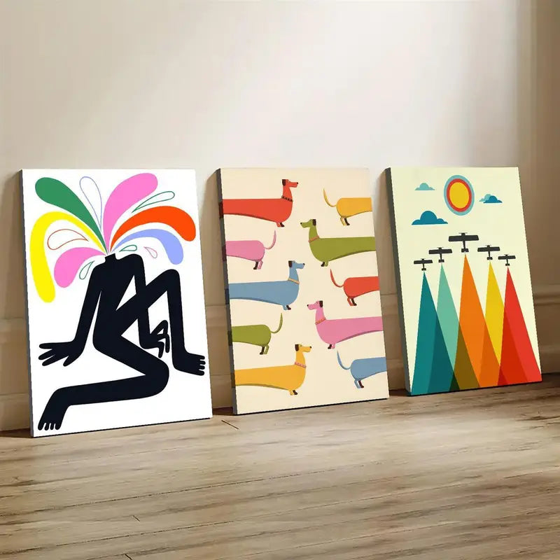 3pcs Man with a Flower in His Head, Abstract Fashion Metal Print Ready to Hang Art