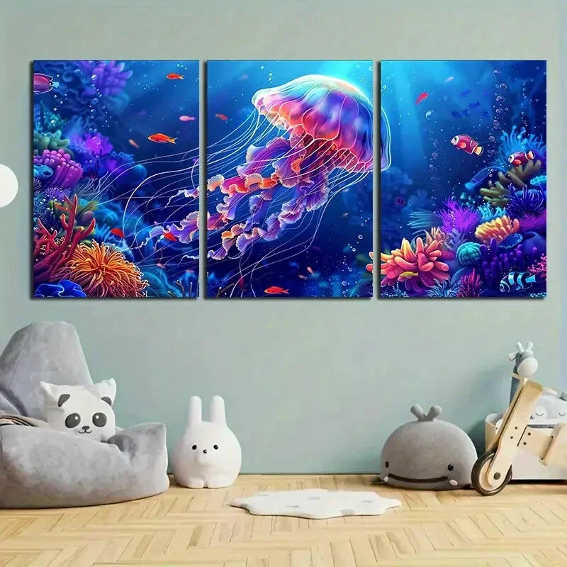 3pcs Marine Life Jellyfish and Coral Reef Metal Print Ready to Hang Art