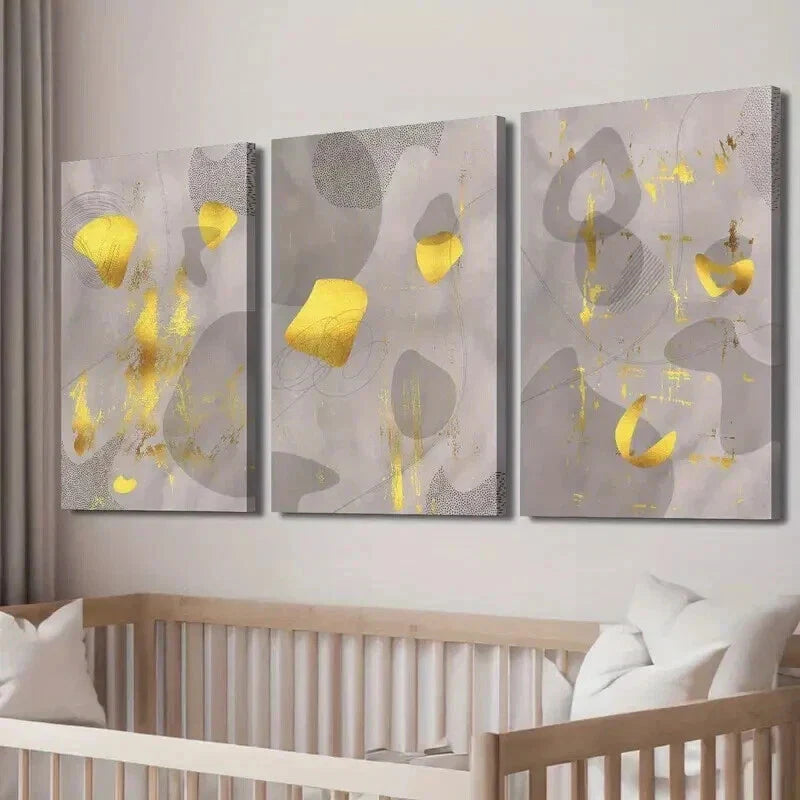 3pcs Medieval Golden And Brown Shapes Wall Art Set Canvas Framed 40x60cm - High Quality Print 100% Australian Made Wall Canvas Ready to Hang