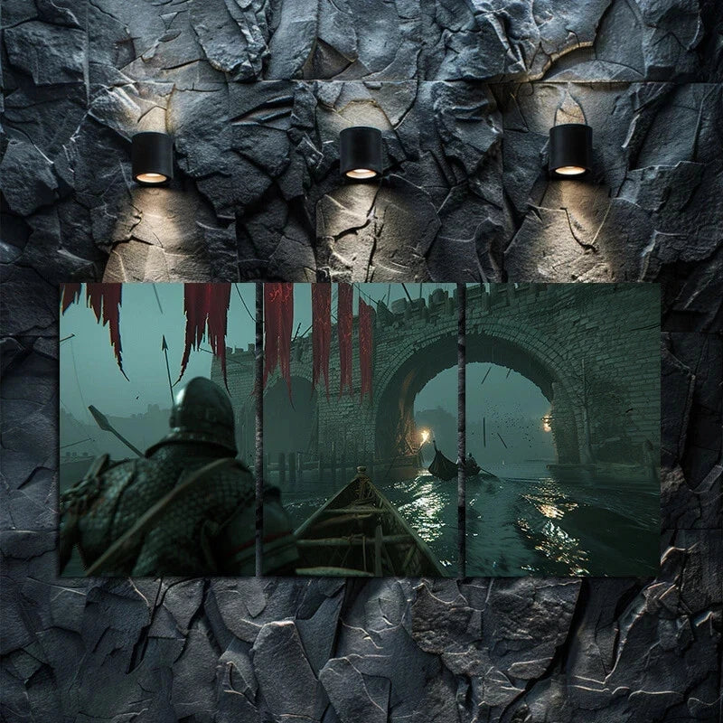 3pcs Medieval River Scene Artistic Metal Print Ready to Hang Art