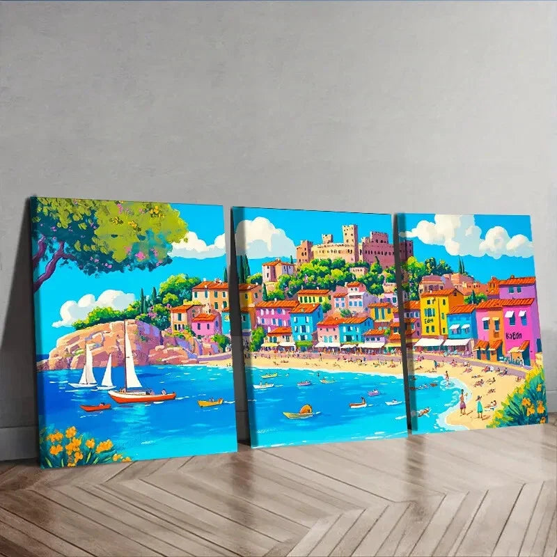 3pcs Mediterranean town Painting Wall Art Set Canvas Framed 40x60cm - High Quality Print 100% Australian Made Wall Canvas Ready to Hang