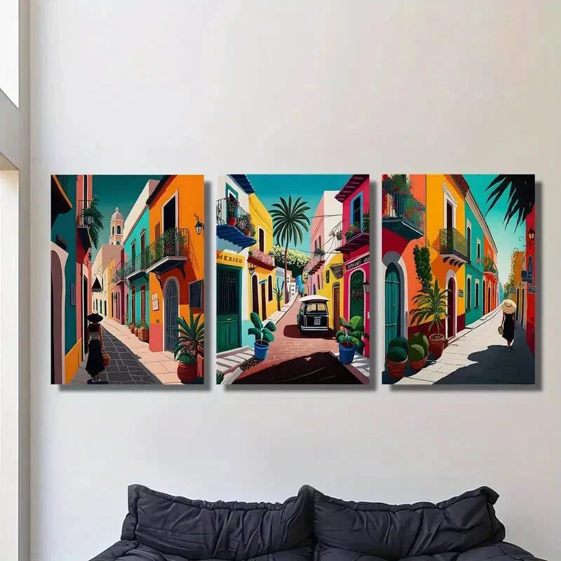 3pcs Mexican street art, Mexican mural Metal Print Ready to Hang Art