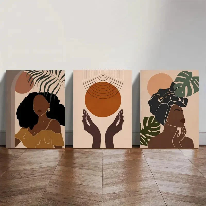 3pcs Mid-Century Modern Abstract Jungle Plant Metal Print Ready to Hang Art