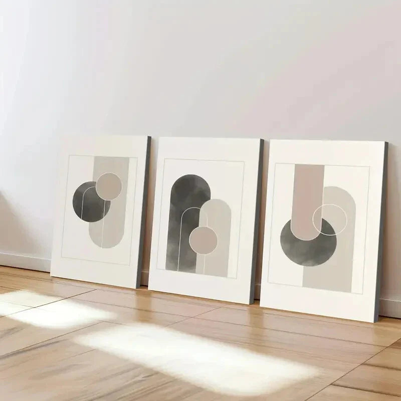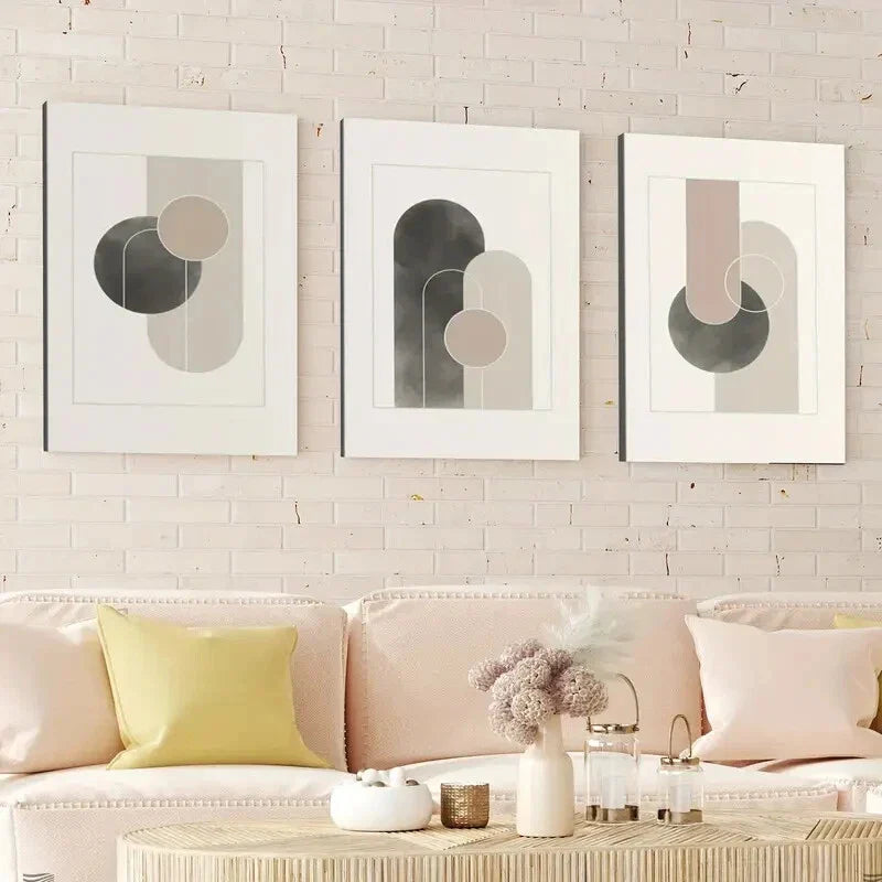 3pcs Mid Century Modern Abstract Shapes Rounds Wall Art Set Canvas Framed 40x60cm - High Quality Print 100% Australian Made Wall Canvas Ready to Hang