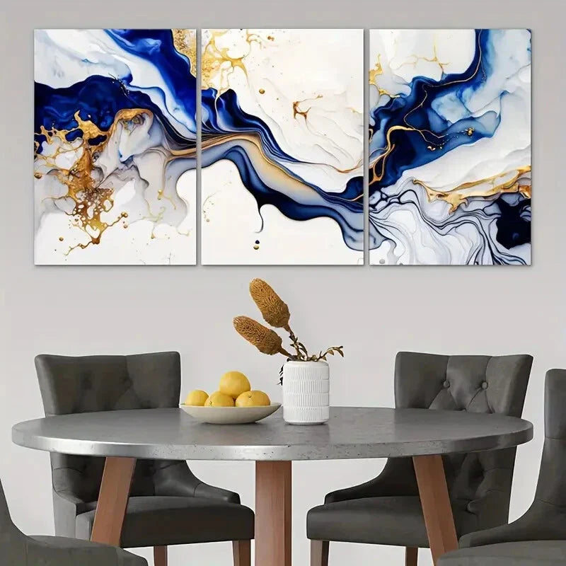 3pcs Midnight Blue Abstract Design Retro Geometric Metal Print Ready to Hang Art