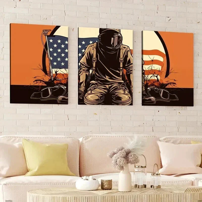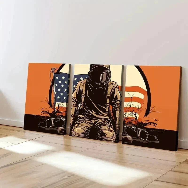 3pcs Military Boots Helmet Rifle Abstract Wall Art Set Canvas Framed 40x60cm - High Quality Print 100% Australian Made Wall Canvas Ready to Hang