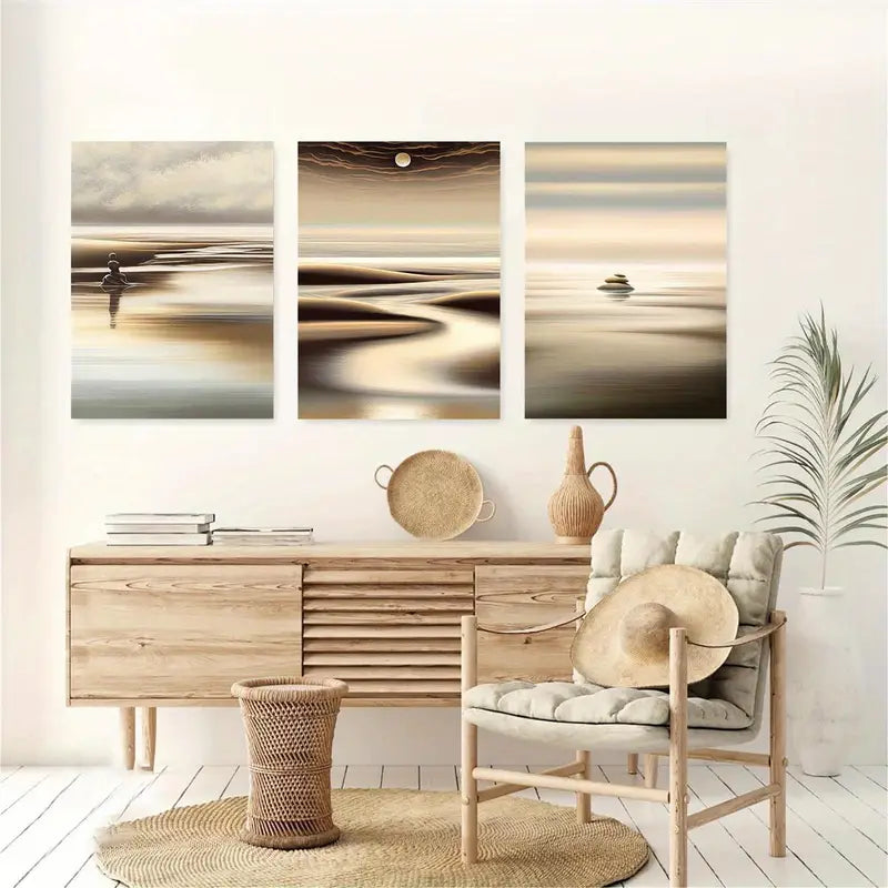 3pcs Minimalist Beach Sunset & Sand Design Metal Print Ready to Hang Art