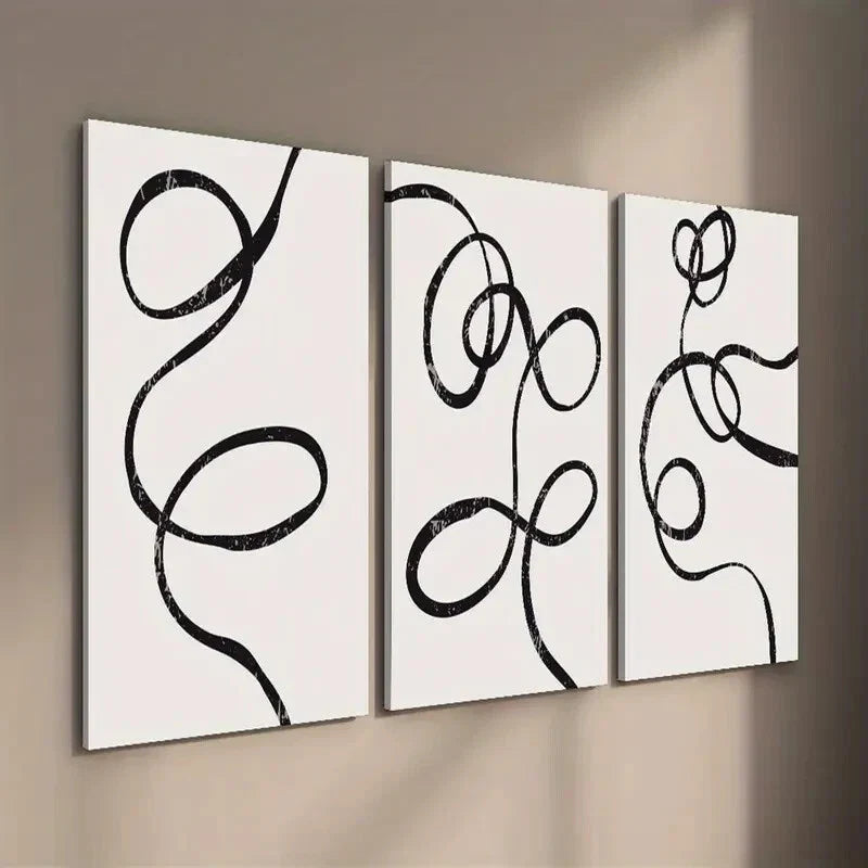 3pcs Minimalist Black & Beige Abstract Design Wall Art Set Canvas Framed 40x60cm - High Quality Print 100% Australian Made Wall Canvas Ready to Hang