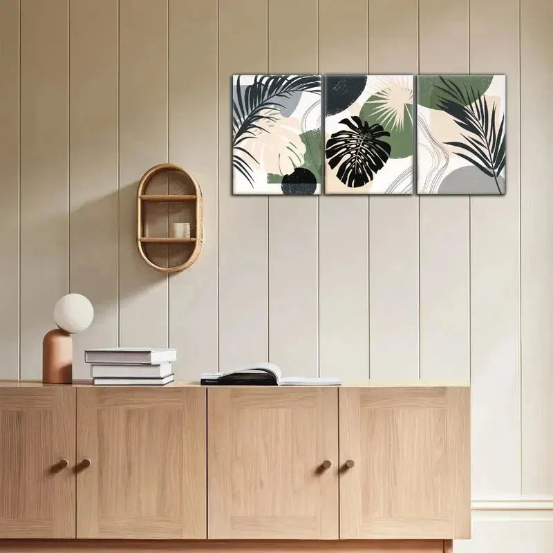 3pcs Minimalist Botanical Leaf Prints in Black Metal Print Ready to Hang Art
