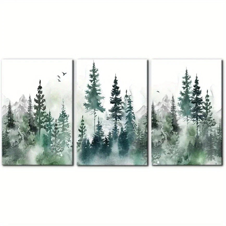 3pcs Misty Forest Green Mountain Metal Print Ready to Hang Art