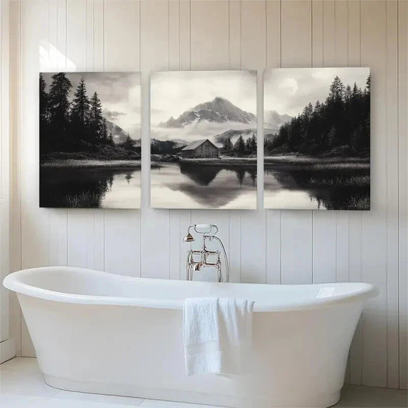 3pcs Misty Lake and Cabin Tranquil Perfect Wall Art Set Canvas Framed 40x60cm - High Quality Print 100% Australian Made Wall Canvas Ready to Hang