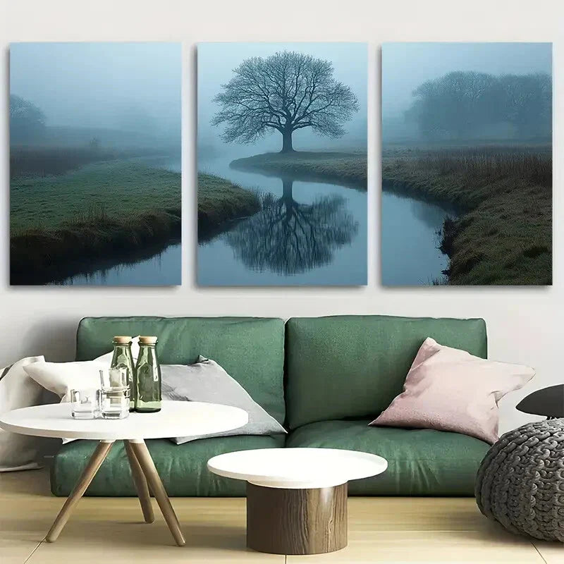 3pcs Misty Morning in English Countryside Design Metal Print Ready to Hang Art