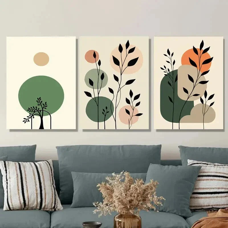 3pcs Modern Abstract Botanical Green Leaf Metal Print Ready to Hang Art