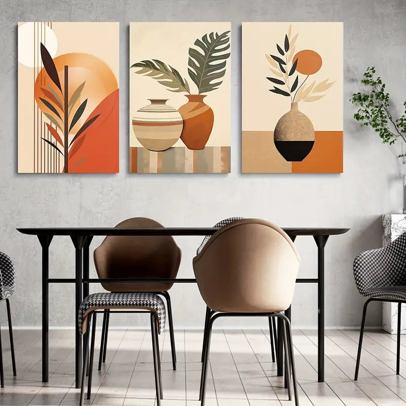 3pcs Modern abstract geometric Pot Painting Metal Print Ready to Hang Art