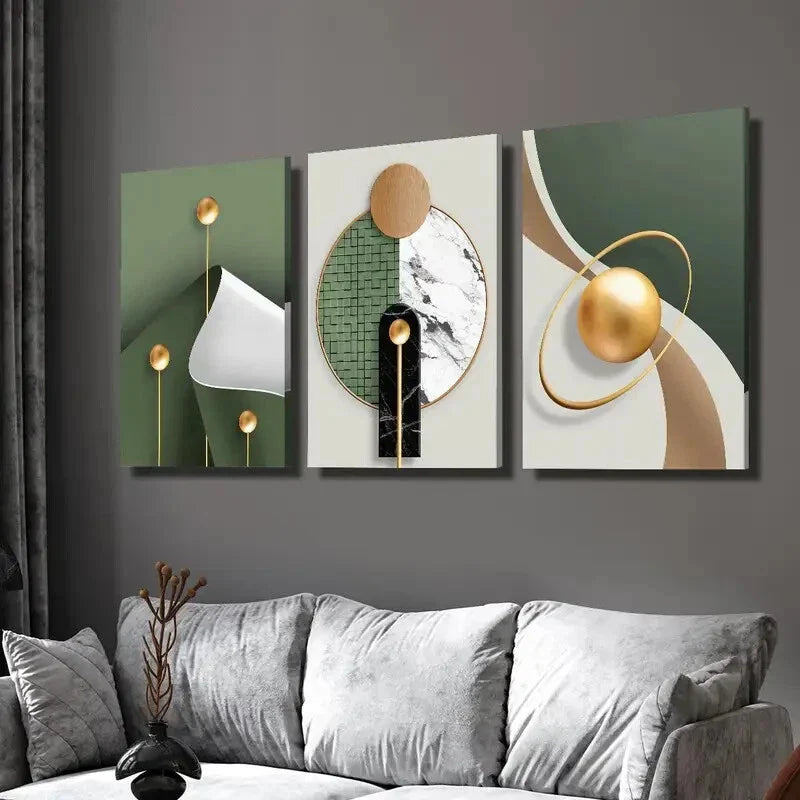 3pcs Modern Abstract Golden Geometric Wall Art Set Canvas Framed 40x60cm - High Quality Print 100% Australian Made Wall Canvas Ready to Hang