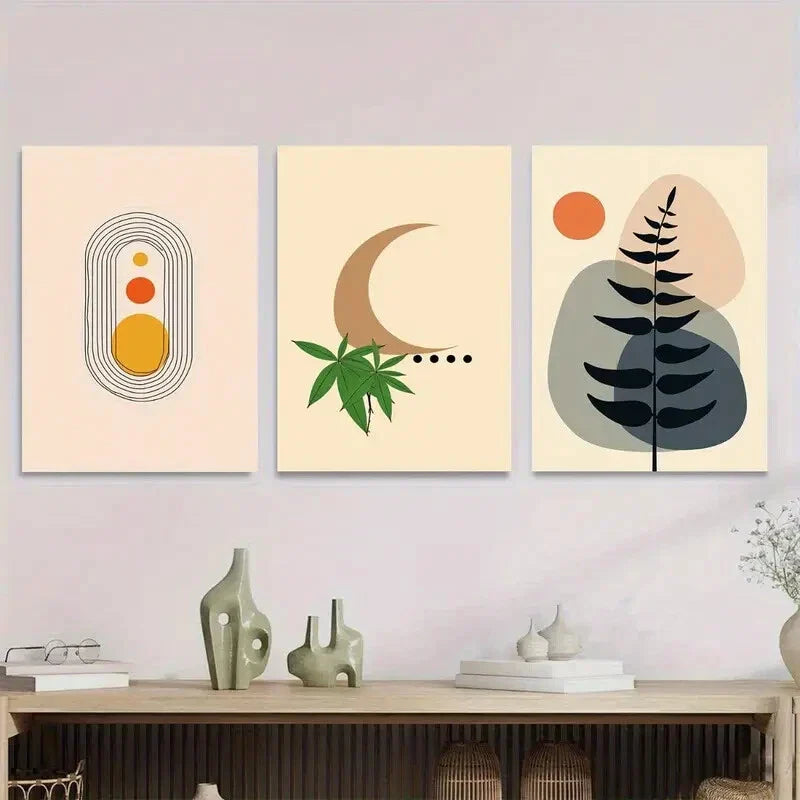 3pcs Modern Abstract Minimalist Black Metal Print Ready to Hang Art