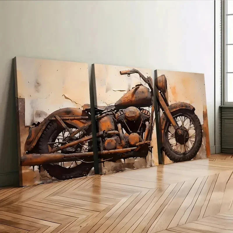 3pcs Modern Art Abstract Motorcycle Brown Art Wall Art Set Canvas Framed 40x60cm - High Quality Print 100% Australian Made Wall Canvas Ready to Hang