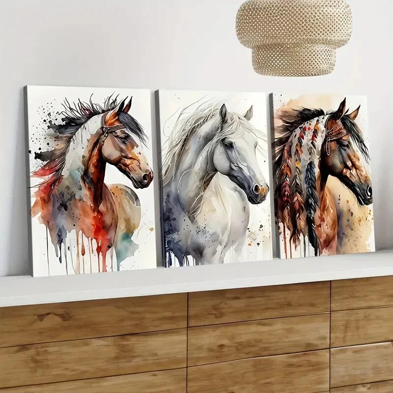 3pcs Modern Art Modern Abstract Style Horse Wall Art Set Canvas Framed 40x60cm - High Quality Print 100% Australian Made Wall Canvas Ready to Hang