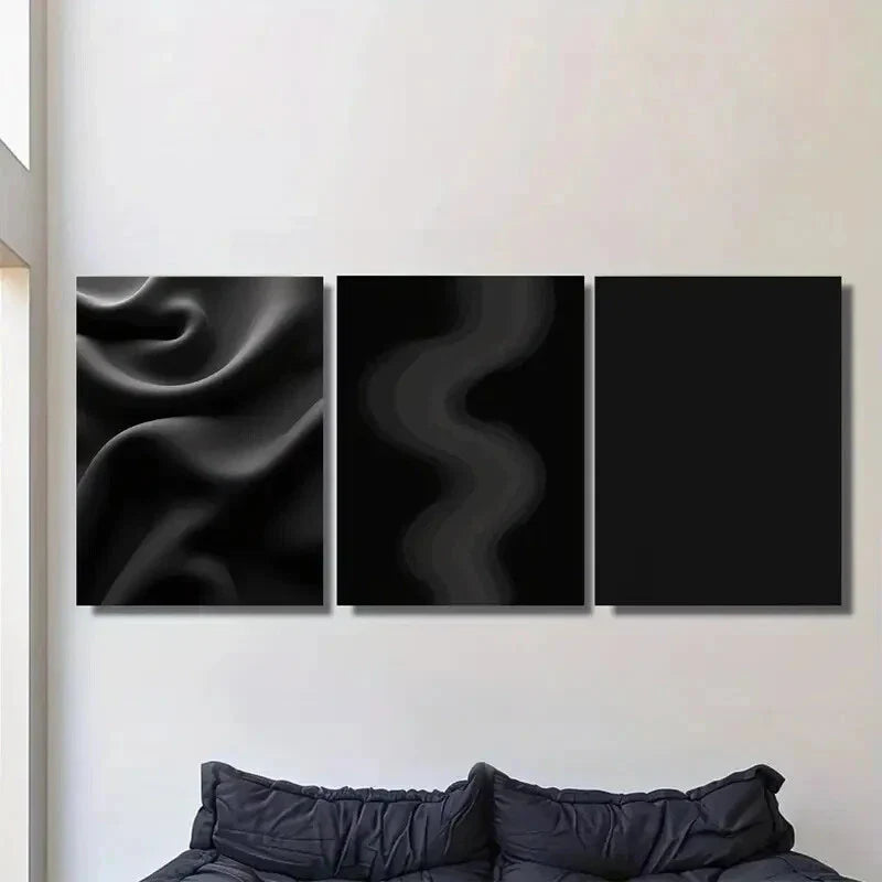 3pcs Modern Black Abstract Metal Print Ready to Hang Art