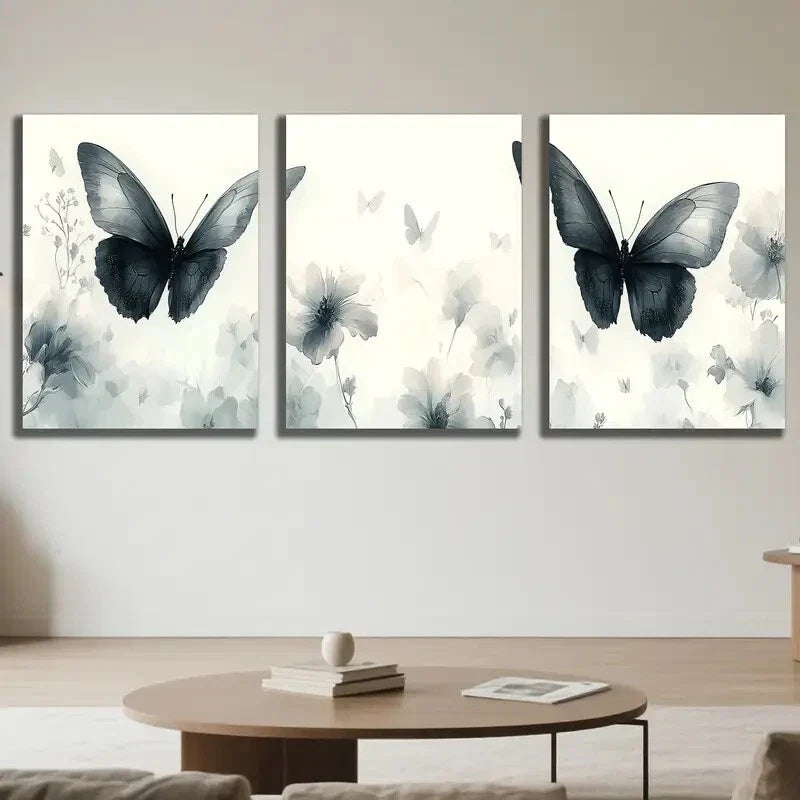 3pcs Modern Butterfly & Floral Wall Art Metal Print Ready to Hang Art