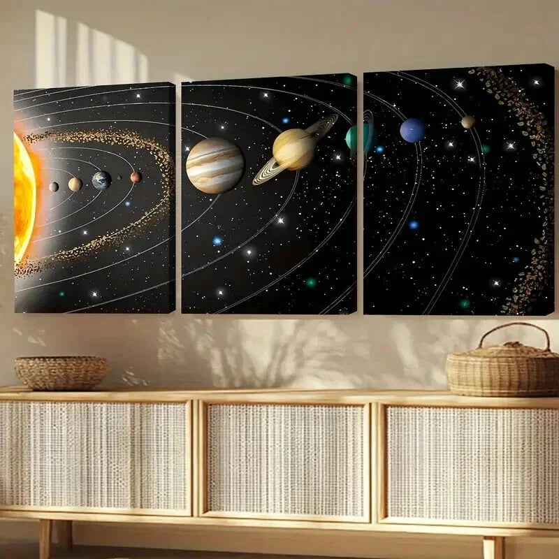 3pcs Modern Cosmic Art Black Line & Space Sun Wall Art Set Canvas Framed 40x60cm - High Quality Print 100% Australian Made Wall Canvas Ready to Hang