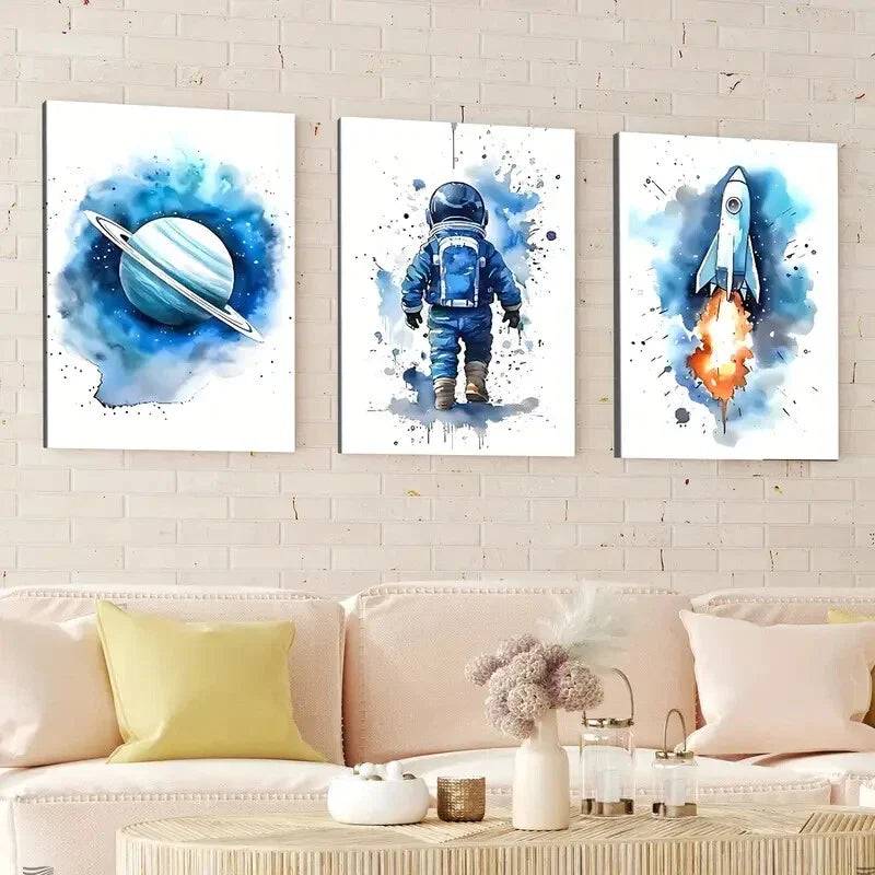 3pcs Modern Cosmic Art Space Rocket Blue & Fire Wall Art Set Canvas Framed 40x60cm - High Quality Print 100% Australian Made Wall Canvas Ready to Hang