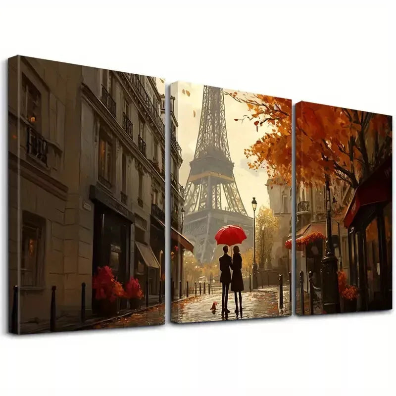 3pcs Modern Couple Walking Near Eiffel Tower Wall Art Set Canvas Framed 40x60cm - High Quality Print 100% Australian Made Wall Canvas Ready to Hang
