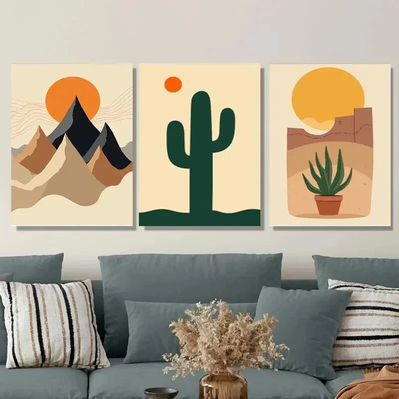 3pcs Modern Desert Landscape Abstract Cactus Wall Art Set Canvas Framed 40x60cm - High Quality Print 100% Australian Made Wall Canvas Ready to Hang