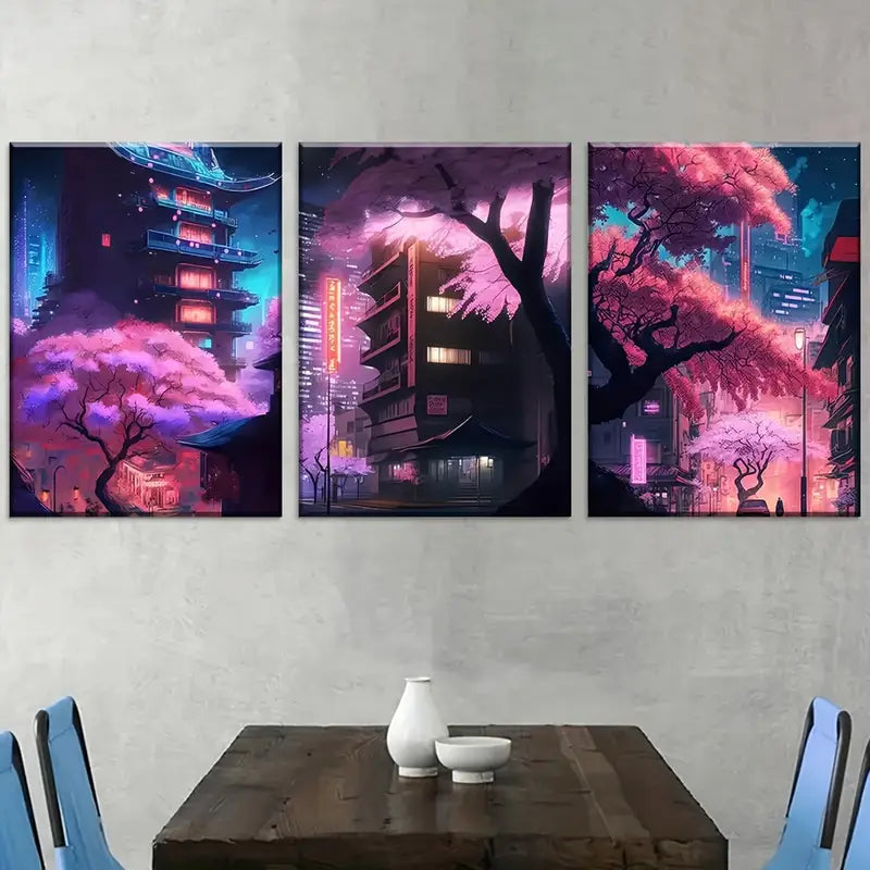 3pcs Modern Fashion Abstract City Technology Landscape Wall Art Set Canvas Framed 40x60cm - High Quality Print 100% Australian Made Wall Canvas Ready to Hang
