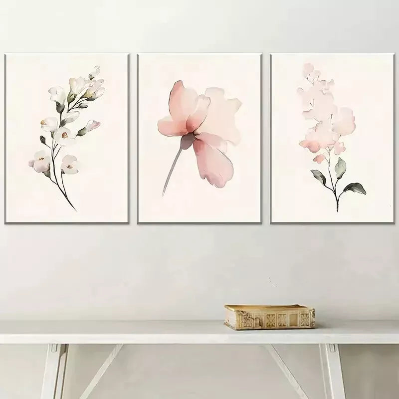 3pcs Modern Floral Pink Peonies White Flowers Wall Art Set Canvas Framed 40x60cm - High Quality Print 100% Australian Made Wall Canvas Ready to Hang