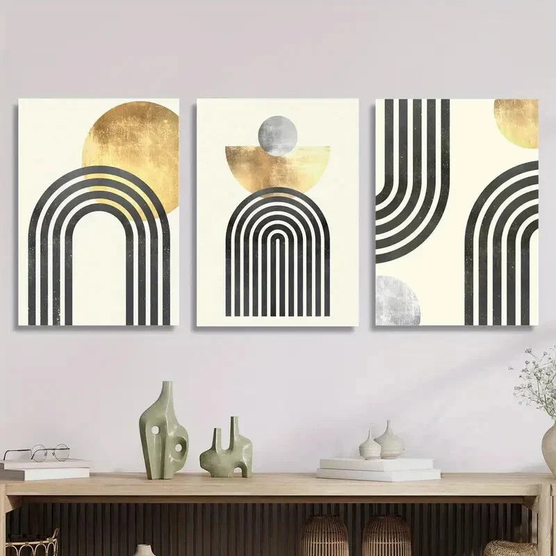 3pcs Modern Geometric Abstract Line Art Metal Print Ready to Hang Art