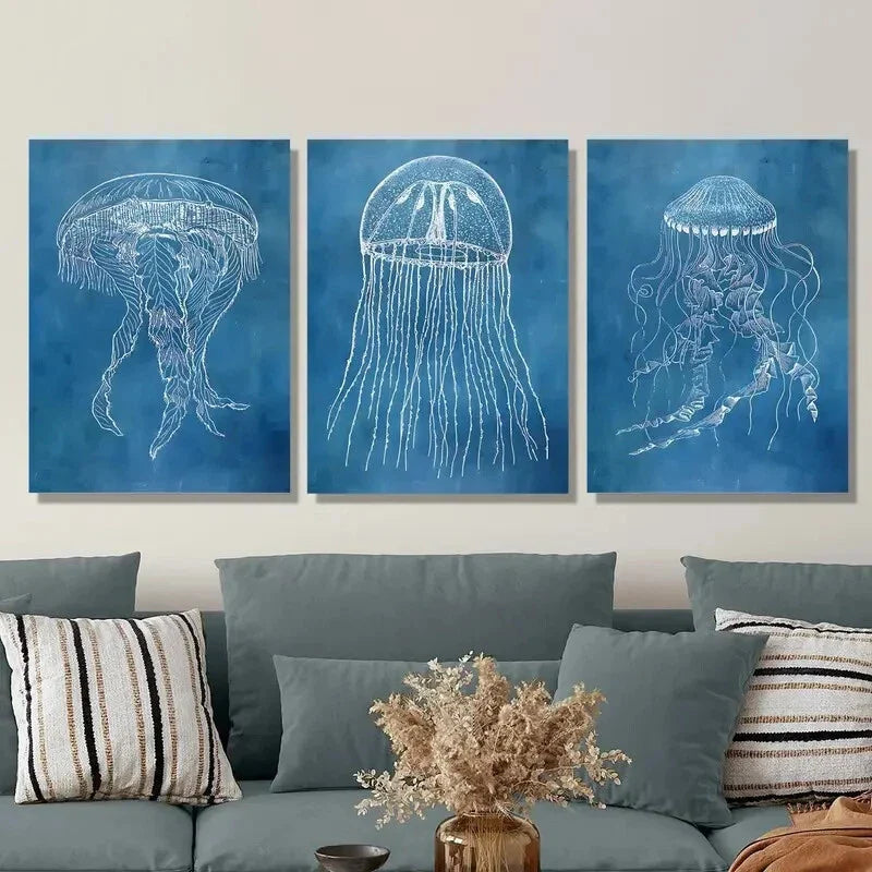 3pcs Modern Luxury Mordai Blue, Classic Metal Print Ready to Hang Art