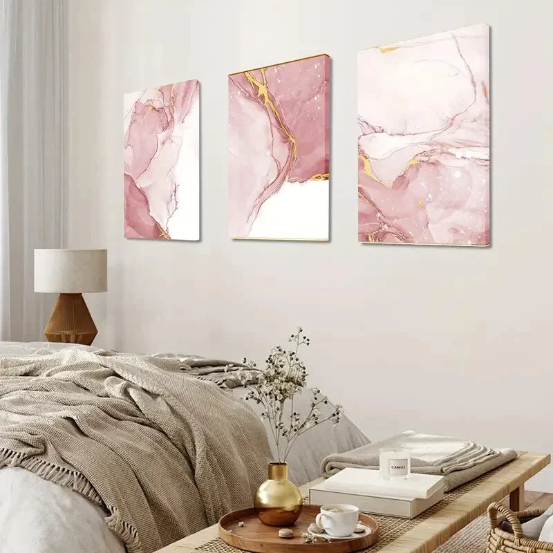 3pcs Modern Pink Silky Abstract Decor Wall Art Set Canvas Framed 40x60cm - High Quality Print 100% Australian Made Wall Canvas Ready to Hang