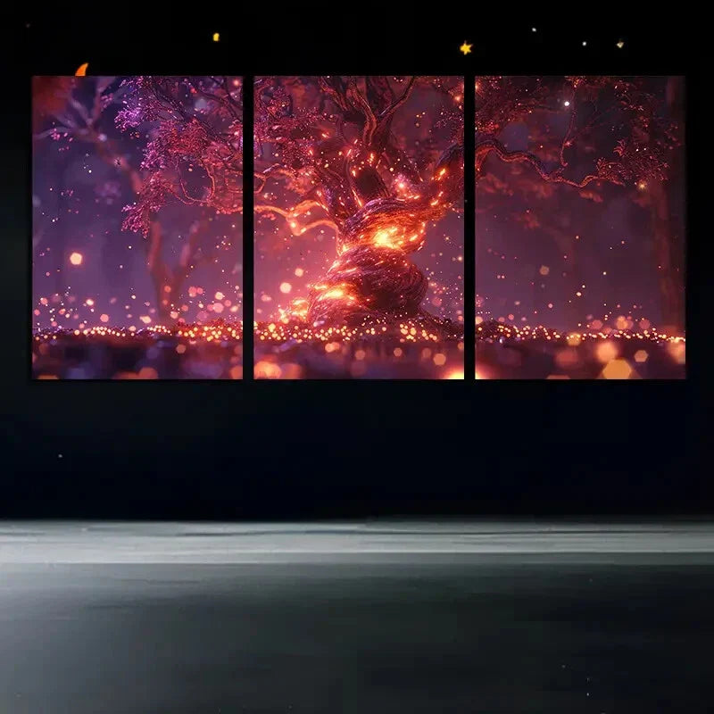 3pcs Modern Trees Golden Branches Metal Print Ready to Hang Art